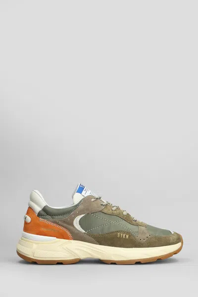 Reverse Sneakers in green Suede and fabric, laces, patch on tab, almond toe, canvas details, side logo print, rubber outsole, logo on heel, 100% leather, Made in Italy