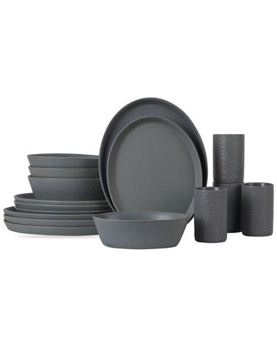 STONE BY MERCER PROJECT Stone Lain By Mercer Project Katachi 16pc Stoneware Dinnerware Set In Charcoal