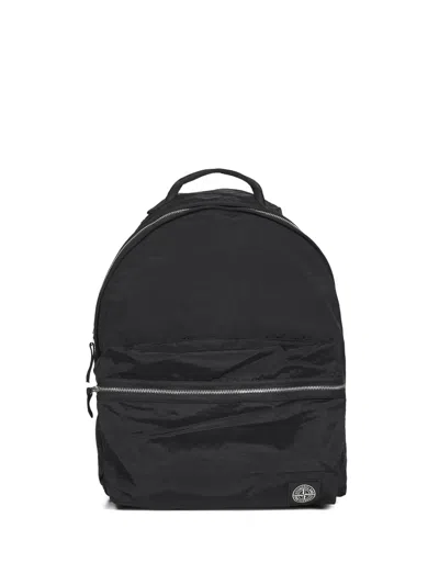 STONE ISLAND Adjustable Strap Logo Backpack With Multiple Pockets In Black