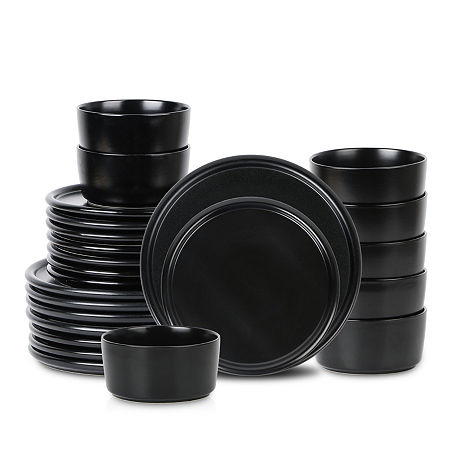 From relaxed, everyday settings to sleek, formal tablescapes, the eden dinnerware set embodies the essence of chic, contemporary design.strikingly classic and thoughtfully crafted, each piece of the eden collection was designed with a refined lipped edge, as well as a glossy finish, for an added touch of tasteful simplicity. It's the perfect choice for those who appreciate understated elegance and classic beauty in their dinnerware - like you. This set includes: round 10.75" dinner platesround 8.6" salad platesround 5.6" cereal bowlsIncluded: 8 5 1/2 Inch Bowl(s), 8 8 1/2 Inch Bowl(s), 8 10 3/4 Inch Dinner Plate(s)Features: Microwave SafePlace Setting: Service for 8Shape: RoundBase Material: 100% StonewareCare: Dishwasher SafeDecor Styles: ModernMaterial: StonewareCountry of Origin: Imported
