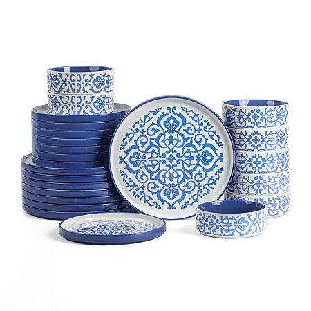 Meet your at-home European escape. Inspired by the beauty of Italy's most-loved coastal town, each dish in the Tropea Dinnerware Set is embellished with traditional hand-painted motifs, unique raised rims, and a durable glossy finish. Pair with timeless tablecloths in the same blue and white tones�the perfect choice, no matter the occasion. THIS SET INCLUDES: 10.5" dinner plates, 8.2" side plates, 5.5" bowls.# Pieces In Set: 8Included: 8 8 3/4 Inch Salad Plate(s), 8 5 1/2 Inch Bowl(s), 8 10 1/2 Inch Dinner Plate(s)Features: Dishwasher Safe, Microwave SafePlace Setting: Service for 8Shape: RoundBase Material: 100% StonewareCare: Dishwasher SafeDecor Styles: CasualMaterial: StonewareCountry of Origin: Imported