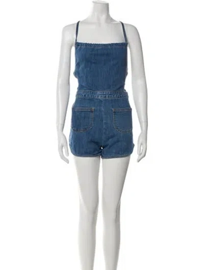 Stoned Immaculate Romper Blue Keyhole Accent Sleeveless with Square Neckline Fit: Jumpsuits and Rompers by Stoned Immaculate typically fit true to size. | Stoned Immaculate Square Neckline Romper in Blue, Women's S