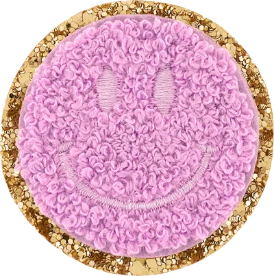 Grape Glitter Varsity Smiley Face Patch In Pink