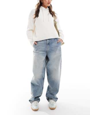 STRADIVARIUS Low Rise Baggy Jean In Mid Blue