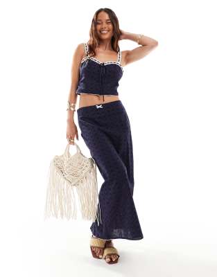 Str Midi Skirt With Embroidery Detail In Navy - Part Of A Set