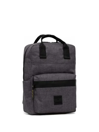 dark grey double top-handle mesh back-panel zipped main-compartment external zipped-pocket logo patch