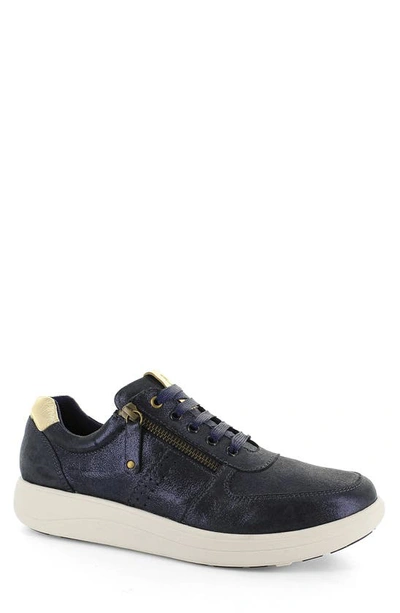 When fashion and function come together seamlessly.Step into comfort and style designed for effortless athleisure appeal. Made with two-tone high-quality leather in an eye-catching Navy Sparkle. Feature a side zip closure and lace fastening for easy wear. Experience unbeatable comfort with Biomechanical Footbed Technology and lightweight EVA midsoles, giving you a 'walking on air' sensation. With durable rubber outsoles providing excellent grip. Enjoy the snug fit of soft microfiber linings in a standard D+ width.