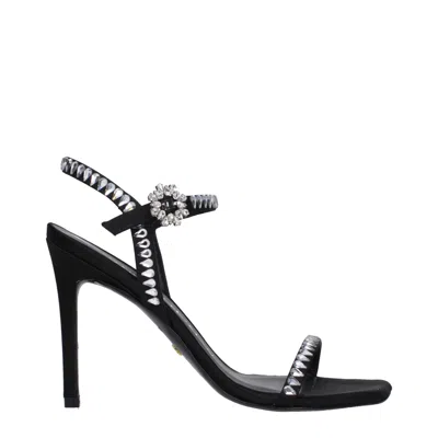 Black Satin Stiletto Heel Sandals