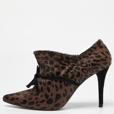 Pre-owned Brown/black Leopard Print Calfhair Pointed Toe Booties Size 38