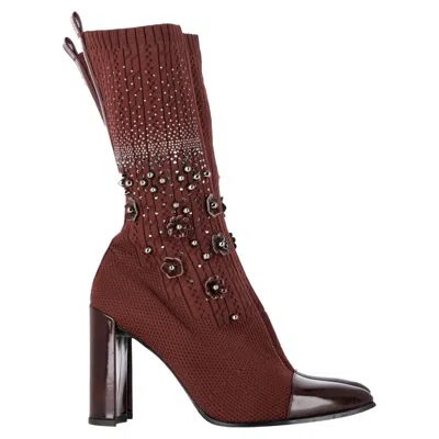 Embellished Knitted Sock Ankle Boots In Brown Wool