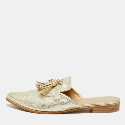 STUART WEITZMAN Gold Texture Leather Tassel Pointed Toe Flat Mules