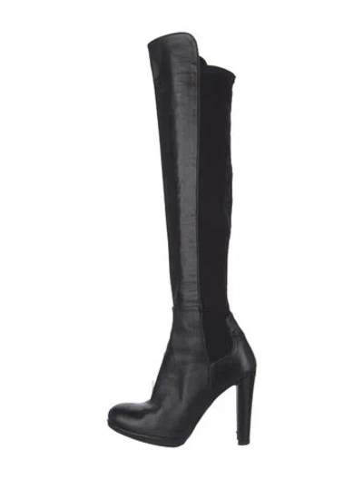Stuart Weitzman Leather Over-The-Knee Boots Black Semi-Pointed Toes Platform Designer Fit: This designer typically runs true to size. Unfortunately, due to restrictions, this item may not be eligible for shipping in all areas. | Stuart Weitzman Leather Boots in Black, Women's US 8 | 8