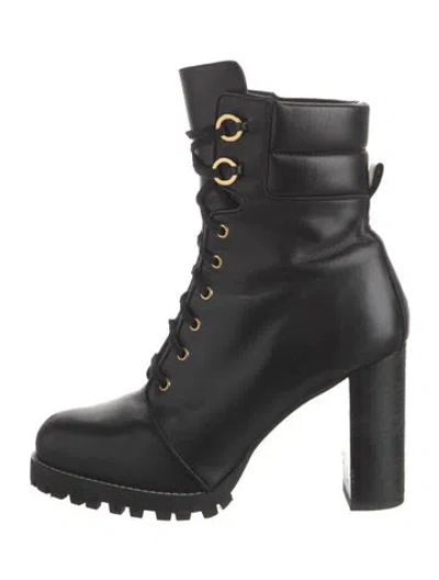 Stuart Weitzman Leather Ankle Combat Boots Black Round-Toes Platform Lace-Up Closure at Uppers Designer Fit: This designer typically runs true to size. Unfortunately, due to restrictions, this item may not be eligible for shipping in all areas. | Stuart Weitzman Leather Combat Boots in Black, Women's US 10 | 10