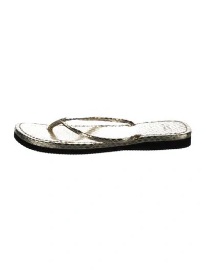 Stuart Weitzman Leather Flip Flops Metallic & Silver Designer Fit: This designer typically runs true to size. Unfortunately, due to restrictions, this item may not be eligible for shipping in all areas. | Stuart Weitzman Leather Flip Flops in Metallic/Silver, Women's 8.5