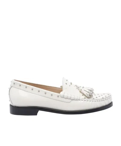 STUART WEITZMAN Loafers With Studded Detailing And Tassel Accent In White