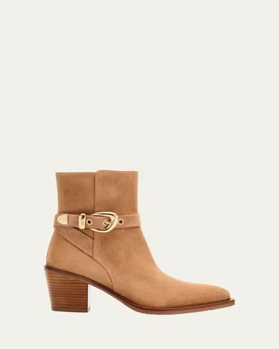 STUART WEITZMAN Maven Suede Buckle Western Booties In Multi