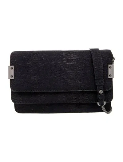 Stuart Weitzman Messenger Bag Blue Tonal Hardware Chain-Link Shoulder Strap Single Exterior Pocket Canvas Lining & Four Interior Pockets with Card Slots Snap Closure at Front | Stuart Weitzman Messenger Bag in Blue
