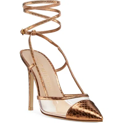 STUART WEITZMAN Mondrian Pointed Toe Slingback Pump With Removable Ankle Wrap In Brass/clear