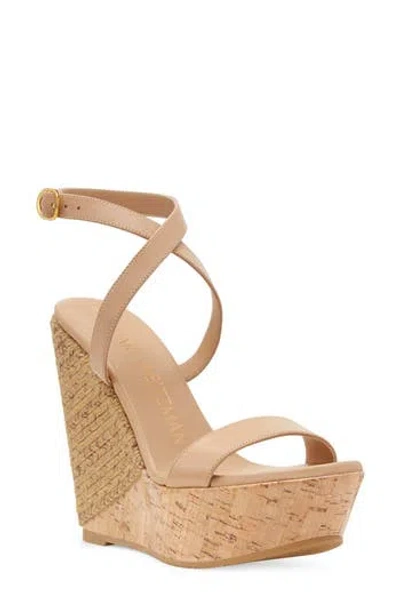 STUART WEITZMAN Platform Wedge Sandal In Adobe/natural