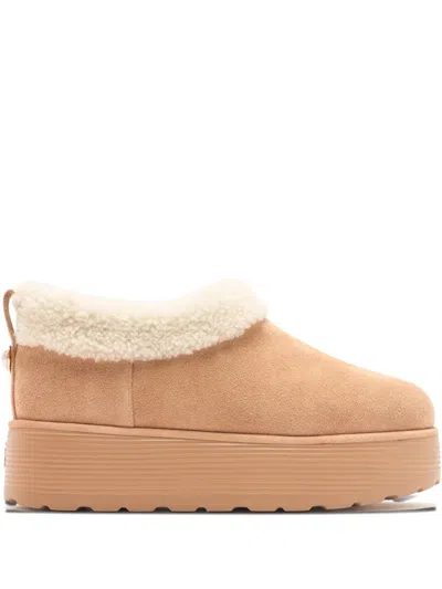 new camel/cream shearling trim pull tab platform sole heart detail ridged sole