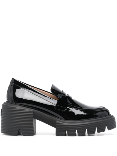 STUART WEITZMAN Soho Glossed-leather Platform Loafers In Black