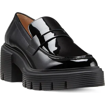 STUART WEITZMAN Chunky Heel Platform Loafers In Glossy Patent Leather In Black