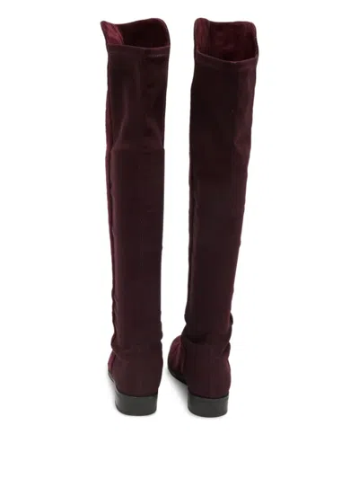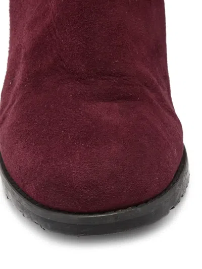 burgundy suede slip-on design flat sole round toe knee-high shaft Condition: GOOD. This previously owned and used item is in good condition with minimal signs of use. This may include fading of material or plating and scratches.