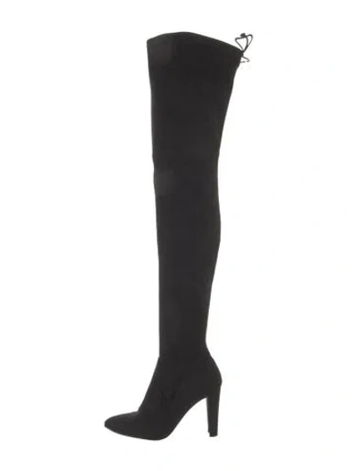 Stuart Weitzman Suede Over-The-Knee Boots Black Round-Toes Tie Closures Designer Fit: This designer typically runs true to size. | Stuart Weitzman Suede Boots in Black, Women's 9