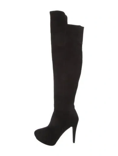 Stuart Weitzman Suede Over-The-Knee Boots Black Semi-Pointed Toes Platform Exposed Zip Closure at Sides Designer Fit: This designer typically runs true to size. | Stuart Weitzman Suede Boots in Black, Women's US 9 | 9