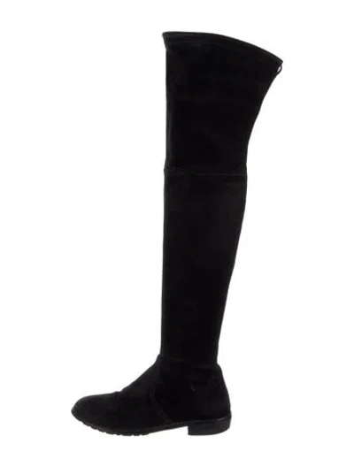 Stuart Weitzman Suede Over-The-Knee Boots Black Leather Trim Round-Toes Tie Closures Includes Dust Bag Designer Fit: This designer typically runs true to size. | Stuart Weitzman Suede Boots in Black, Women's 7
