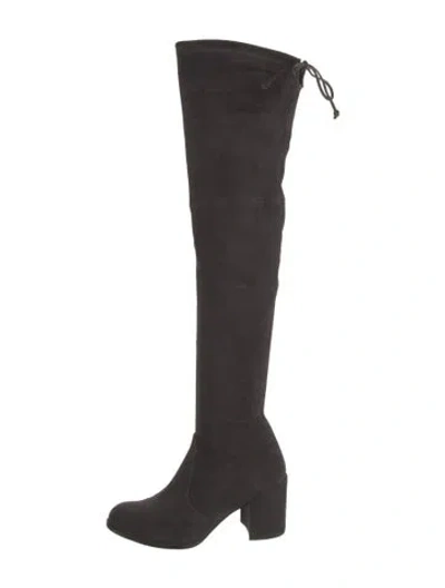 Stuart Weitzman Suede Over-The-Knee Boots Black Round-Toes Tie Closures Includes Box & Dust Bag Designer Fit: This designer typically runs true to size. | Stuart Weitzman Suede Boots in Black, Women's US 6.5 | 6.5