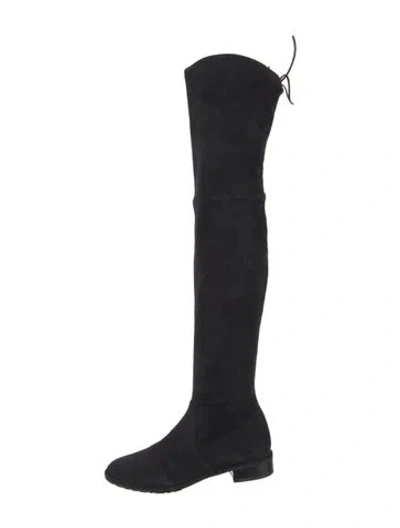 Stuart Weitzman Suede Over-The-Knee Boots Black Round-Toes Tie Closures Designer Fit: This designer typically runs true to size. | Stuart Weitzman Suede Boots in Black, Women's US 9 | 9