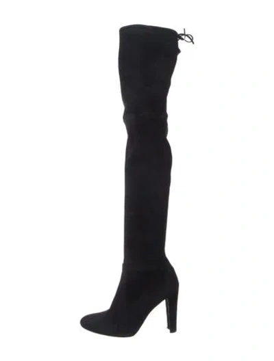 Stuart Weitzman Suede Over-The-Knee Boots Black Round-Toes Tie Closures Designer Fit: This designer typically runs true to size. | Stuart Weitzman Suede Boots in Black, Women's US 8.5 | 8.5