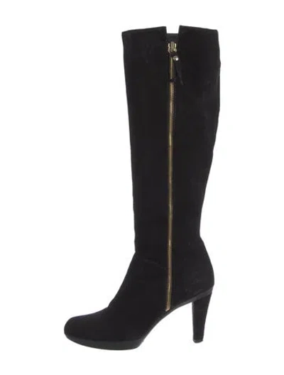 Stuart Weitzman Suede Knee-High Boots Black Semi-Pointed Toes Platform Exposed Zip Closure at Sides Designer Fit: This designer typically runs true to size. | Stuart Weitzman Suede Boots in Black, Women's US 7.5 | 7.5