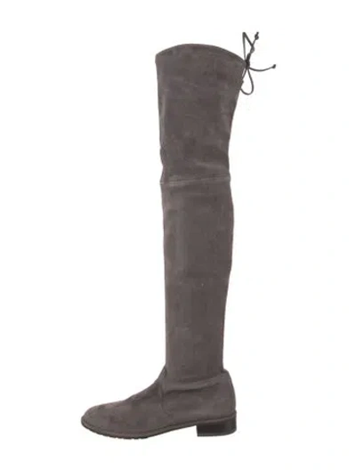 Stuart Weitzman Suede Over-The-Knee Boots Grey Round-Toes Tie Closures Designer Fit: This designer typically runs true to size. | Stuart Weitzman Suede Boots in Grey, Women's US 8 | 8