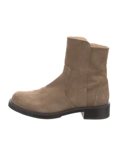 Stuart Weitzman Suede Ankle Boots Neutrals Round-Toes Concealed Zip Closure at Sides Designer Fit: This designer typically runs true to size. | Stuart Weitzman Suede Boots in Neutrals, Women's US 9.5 | 9.5