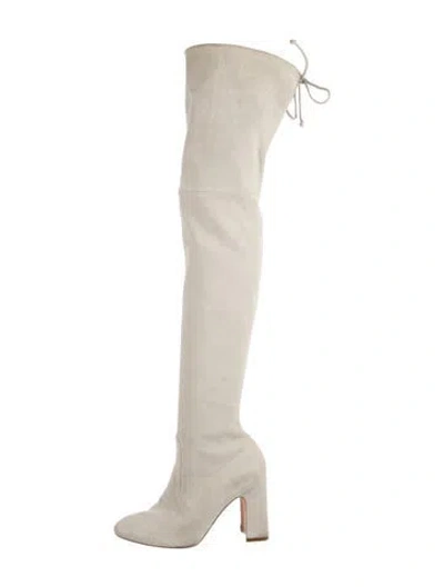 Stuart Weitzman Suede Over-The-Knee Boots White Round-Toes Tie Closures Designer Fit: This designer typically runs true to size. | Stuart Weitzman Suede Boots in White, Women's US 9.5 | 9.5