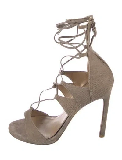 Stuart Weitzman Suede Gladiator Sandals Neutrals Wrap-Around Straps Designer Fit: This designer typically runs true to size. | Stuart Weitzman Suede Gladiator Sandals in Neutrals, Women's 8