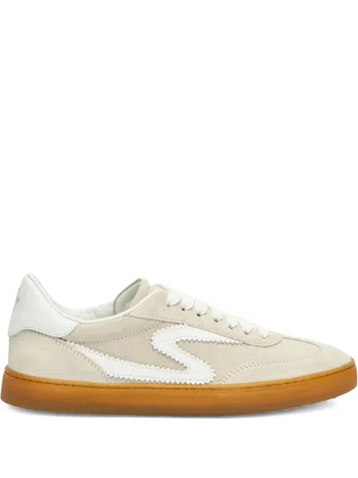 beige logo detail round toe lace-up fastening flat rubber sole low-top design