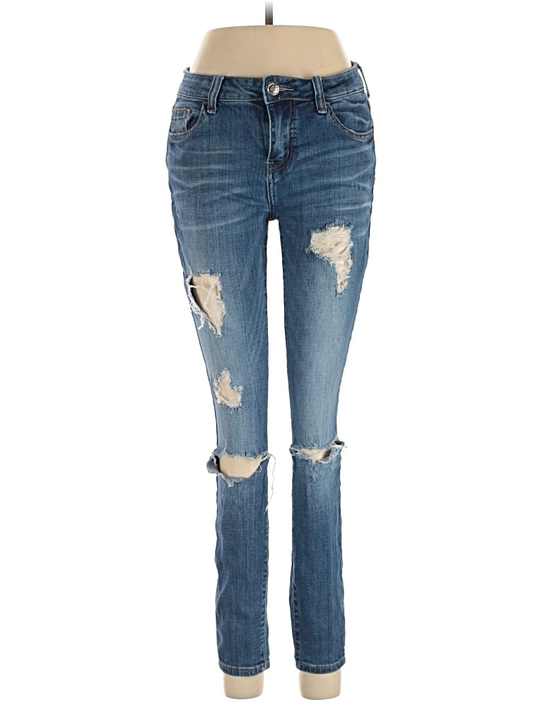STUDIO BLUE Jeans, Size: 28. Item Details:, Hearts Pattern, Distressed Wash, Skinny Leg, Cropped, Boyfriend, Mid/Reg Rise, Women's Bottoms, Cotton/Polyester