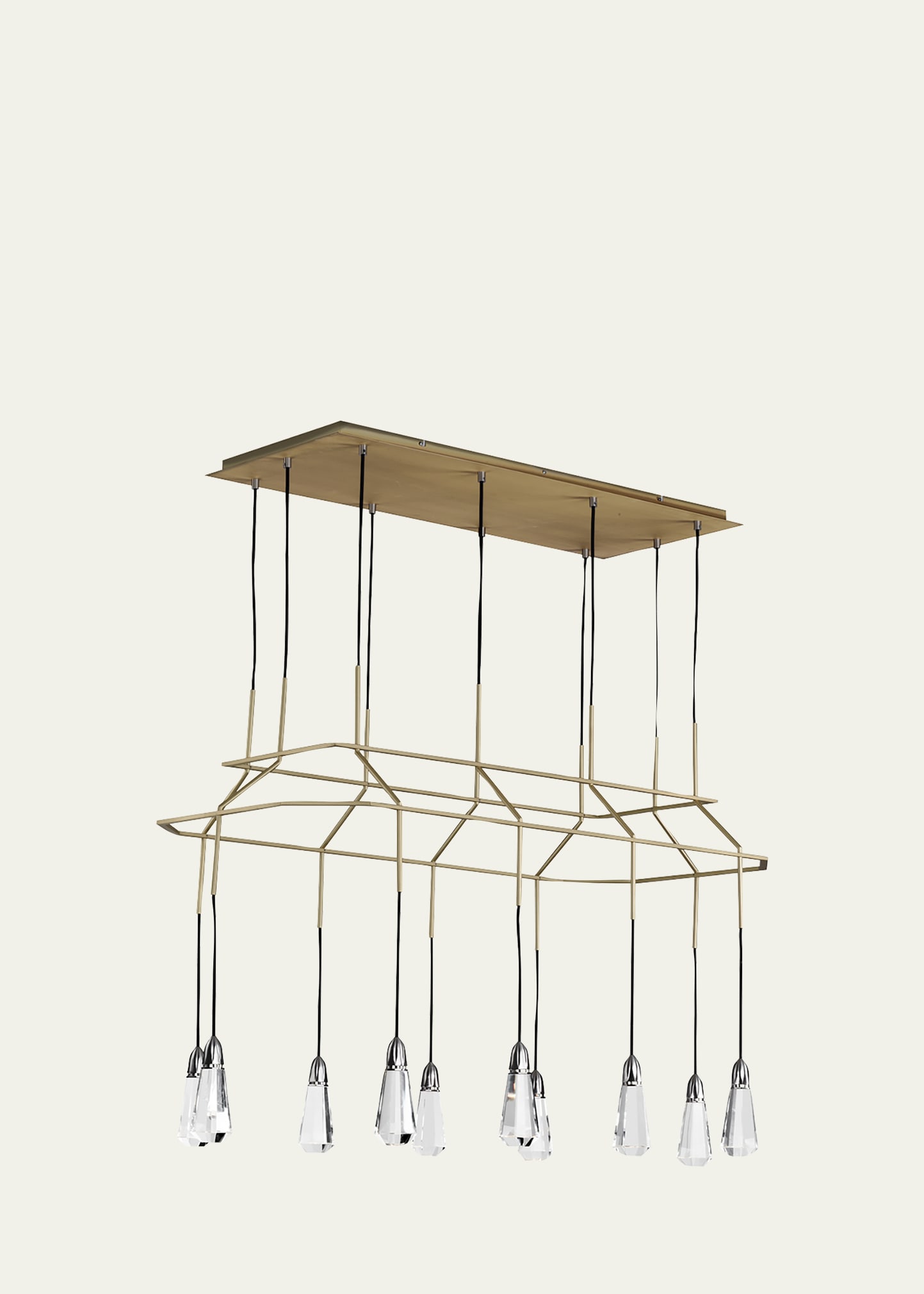 Chandelier is made of steel and crystals Uses ten 30-watt bulbs Approx. 49.3"L x 25.8"W x 33.5"T UL listed Sold individually. Includes hanging hardware Professional installation is recommended Wipe clean Imported Weight, 78.1lbs Boxed weight, approximately 84.0lbs