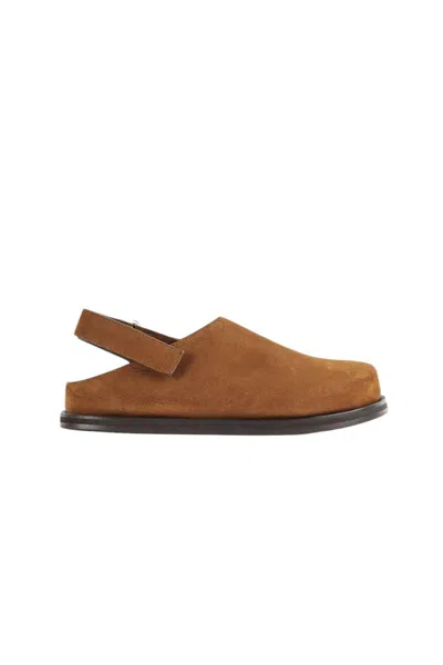 Brown suede mules.straps at back.rounded toe.SpecificationValueSeasonSS24Composition100% LEATHER.ColorBROWNColor CodeBROWNMade InPORTUGALISOPTDepartmentMenSectionSHOESSubsectionCARSHOESSize InformationSHOES ITSize CodeIT