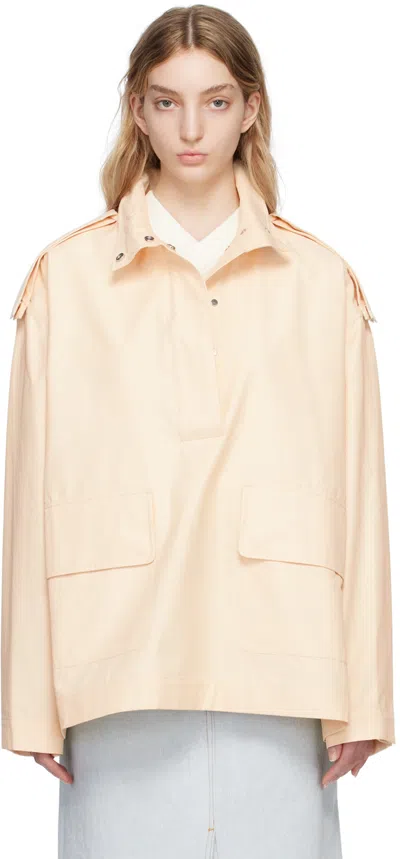 Relaxed jacket with a lapel collar, a press-stud closure at the front, flap pockets, dropped shoulders, detachable shoulder tabs and press-stud fastening at the cuffs.