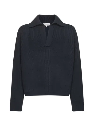 Ribbed Polo-collar Sweater In Blue