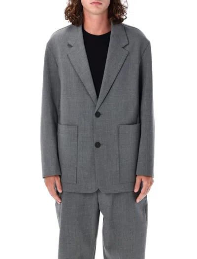 STUDIO NICHOLSON Tailored Single-breasted Jacket Structured Shoulders In Grey Marl