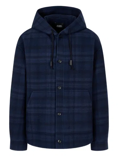 STUDIO TOMBOY Check-pattern Hooded Jacket In Blue