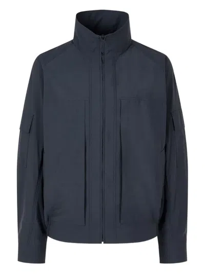 dark grey zip fastening high neck side pockets buttoned cuffs