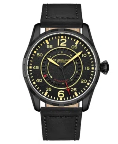 STUHRLING Men's Quartz Black Genuine Leather Strap Watch 44mm
