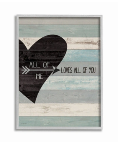 STUPELL INDUSTRIES All Of Me Loves All Of You Distressed Heart Gray Framed Texturized Art, 11" L X 14" H In Multi