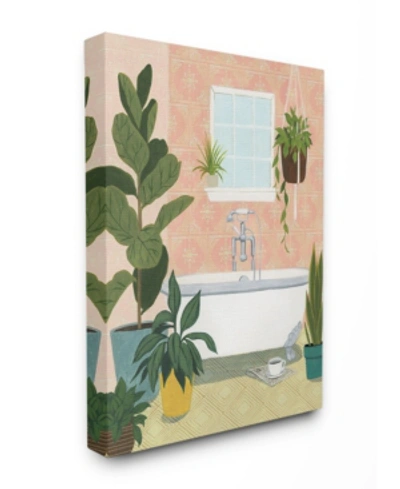 STUPELL INDUSTRIES Peach Walls Bathroom Oasis Scene With Fiddle Leaf Plants Canvas Wall Art, 16" L X 20" H In Multi